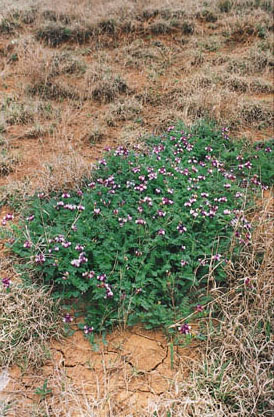Description: A spreading legume. Small in stature. Infrequent or common in localized areas, usually preferring dry, shallow soil of prairies in south-central Oklahoma and north-central Texas. |