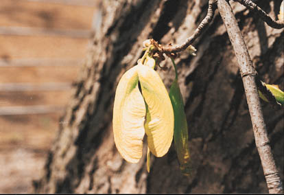Description: A medium-sized tree with a strong, short trunk and a spreading open crown. Common in wet soil along rivers, streams and in bottomlands. Although more common in eastern North America, it is often planted for shade elsewhere. Fruits (samaras) are numerous, large, and mature in the spring. Leaves are silvery white below. Sometimes planted as an ornamental in landscapes. |