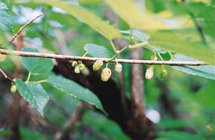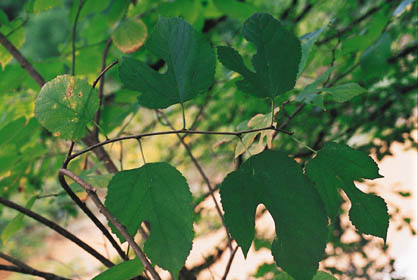 Description: A medium-sized tree found on a wide variety of sites. A native of east Asia, but is thoroughly naturalized in many areas of the U.S. Leaves are often variable in shape and divided into three to five lobes. Fruit maturing pink, white, purple or black in the summer. Fruit resembles a raspberry or blackberry and is relished by many birds and squirrels and can be consumed by humans as well. Used in shelterbelt plantings. Stems and leaves contain milky sap. |