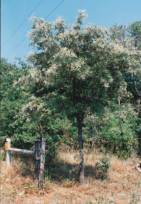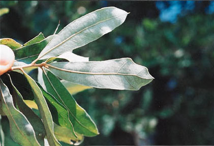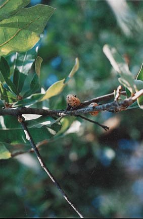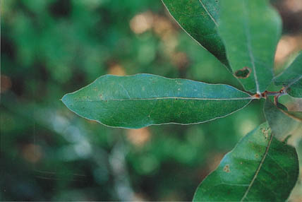 Description: A small tree or shrub occurring on dry sandy uplands. The fruit are eaten by many wildlife species. Bark is grey to black and broken into small square blocks. Bluejack oak is a member of the "Red/Black" oak group whose leaf veins extend past the leaf margin to from bristles. Acorns mature in the fall of the second year. |