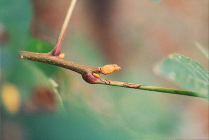 Description: A medium sized tree that is a natural variety of Bitternut hickory, Carya cordiformis. Broad-leaf Bitternut hickory has broader leaves hence the common name. Prefers moist soil of bottomlands and is often an understory plant. Has bright yellow buds. |