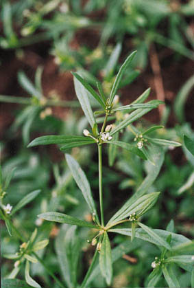 Description: A low growing, spreading forb common on open sandy soils and waste places. Leaves are in whorls of 3 to 6 and are long, narrow or linear shaped. |