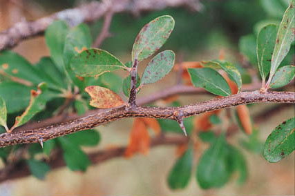 Description: A shrub or small tree with spine-pointed branchlets occurring on rocky outcrops, hillsides, and woods mainly in the southern U.S. Leaves are alternate or clustered on spur branchlets. Purplish black fruit is eaten by many species of wildlife. Is reported to be a good beetree for honey production. Fruits are edible, but may cause illness if eaten in quantity. |