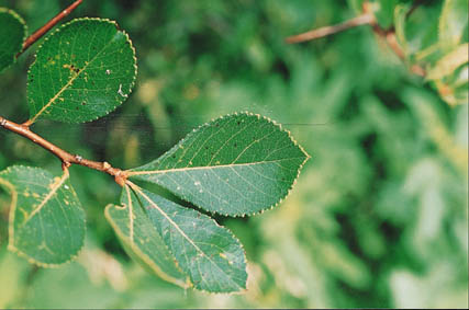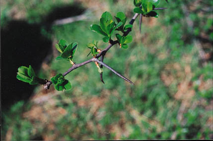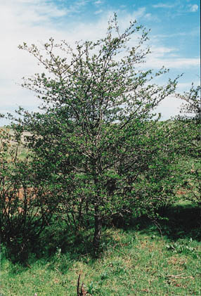 Description: A small tree with a rounded crown occurring along streams and in open uplands in the central and eastern U.S. May form thickets. Twigs are equipped with long, slender spines. The leaves are spoon-shaped. Often planted in wildlife plantings, hedge rows and as an ornamental. The distinctly long spines and shiny dark green leaves without lobes are recognizable characteristics. |