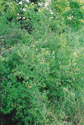 Description: A small rounded shrub occurring in open pastures, brushy prairies and limestone outcrops in the southeastern U.S. The stems are often looping and appear almost vine-like. Flowers are present in very early spreing and fruits may be eaten by some birds and mammals. Shrubby growth form provides good cover for some species of wildlife. |
