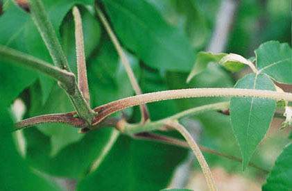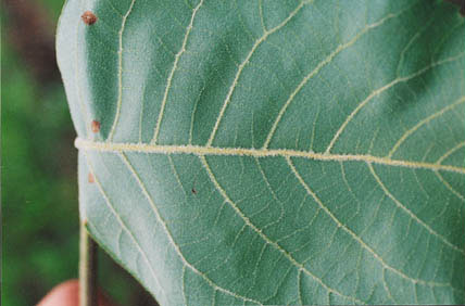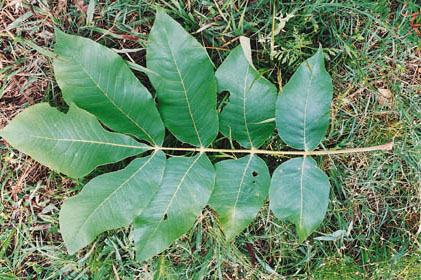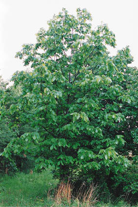 Description: A medium-sized tree found on dry to moist soil of bottomlands and uplands in the eastern and southeastern U.S. The leaf is composed of 7 to 9 leaflets, covered with dense hair underneath and is velvety to the touch. Fruit is thick shelled and is eaten by some wildlife species and humans. The wood is hard, strong and tough, and has many uses including tool handles, baseball bats and smoking meats. |
