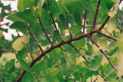 Description: A small tree with a spreading irregular crown found on moist soils in stream and river drainages, mainly in the southcentral and western U.S. Leaves are dark green above, pale with prominent raised veins below and are rather thick and stiff. The common name and variety name refer to the dense network of veins in the leaf. Fruit is eaten by many species of birds and some mammals. The leaves and twigs are sometimes browsed by deer and some livestock.