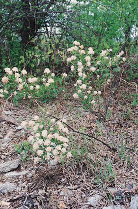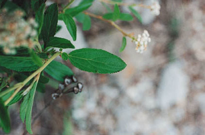 Description: A small spreading shrub with a weak herbaceous-like crown and a woody base. Found in open woods and prairies in the central and eastern U.S. During the American Revolution, the leaves were used as a substitute for tea. The leaves were also used by Native Americans for medicinal purposes. |