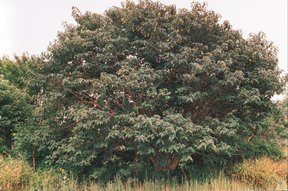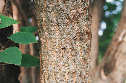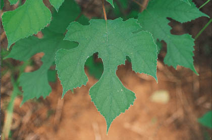 Description: A small tree found on a wide variety of sites. Its broad spreading crown is often irregularly shaped. Leaves and young stems covered with dense hair. The variously shaped leaves feel like sandpaper. Planted as an ornamental and for shade, escaping and becoming naturalized in some areas. Stems and leaves contain milky sap. Fine paper is obtained from the inner bark. Can become a problematic invader. |