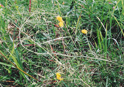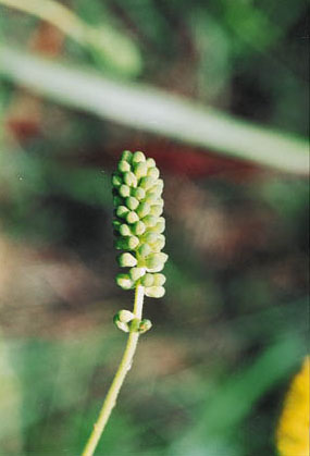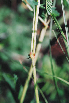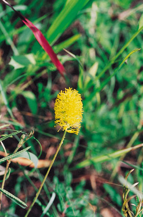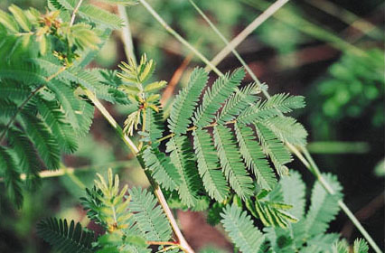 Description: A spreading vine-like legume with soft (or without) prickles. Found on a variety of soils in prairies, woodlands and disturbed areas. The numerous tiny flowers form a yellow puff or ball, hence the common name. The leaves are sensitive, closing when touched. Is eaten by livestock and may be a good wildlife food. |